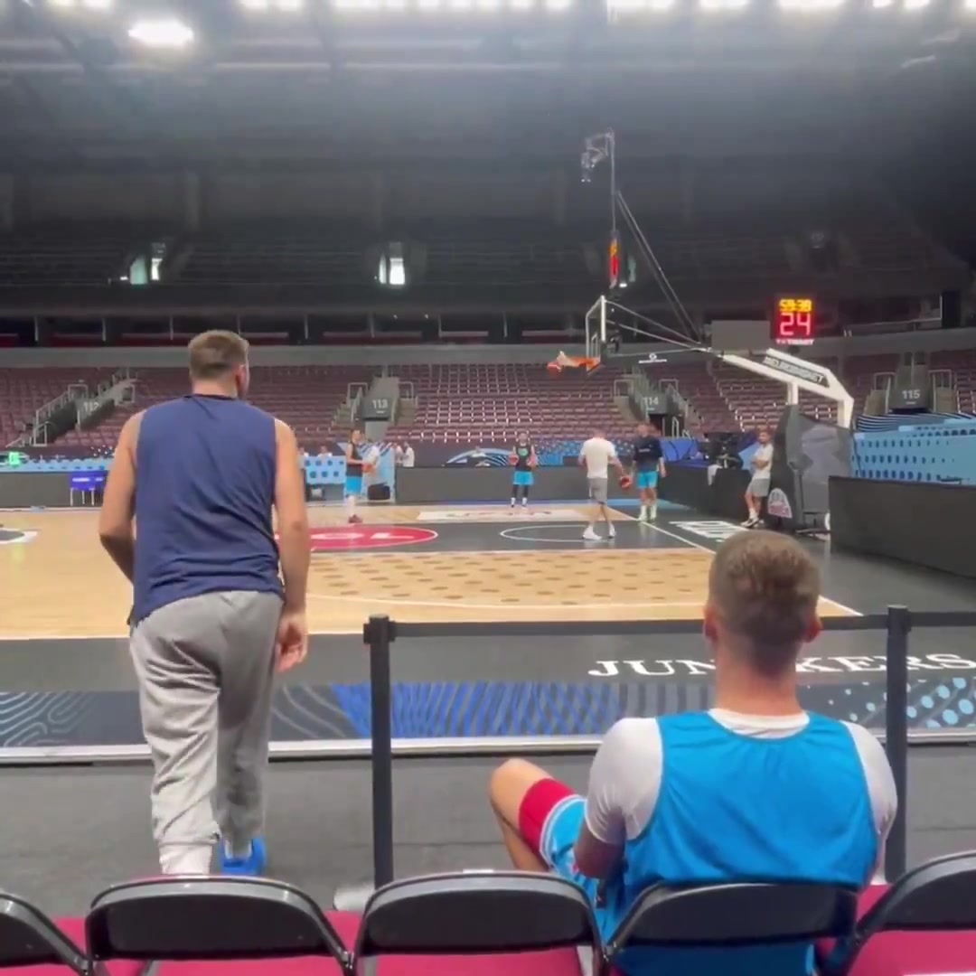 各种玩儿!东契奇坐替补席命中超远三分后又在球员通道前投进三分