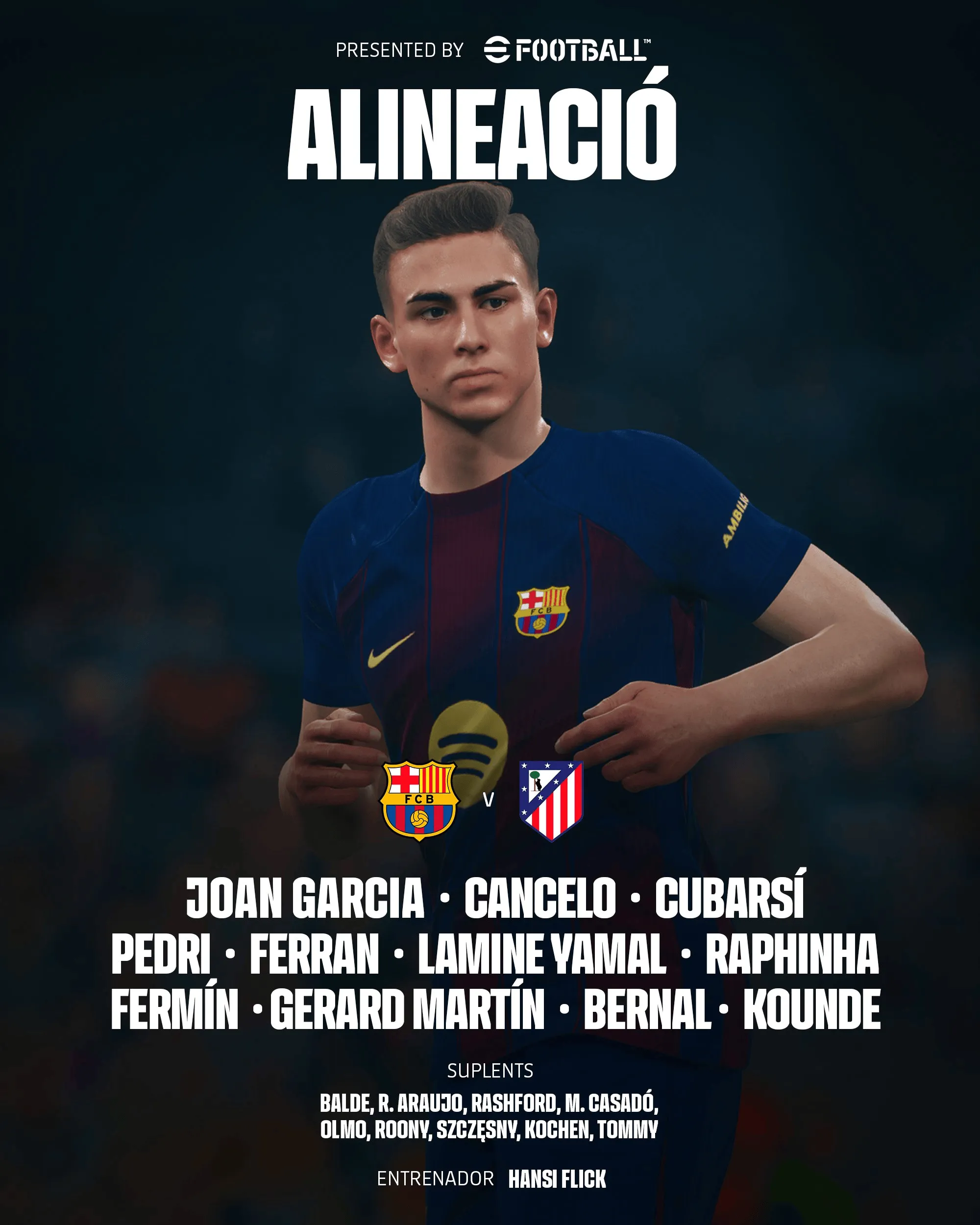 巴萨vs马竞首发:亚马尔PK卢克曼,小蜘蛛、费兰登场